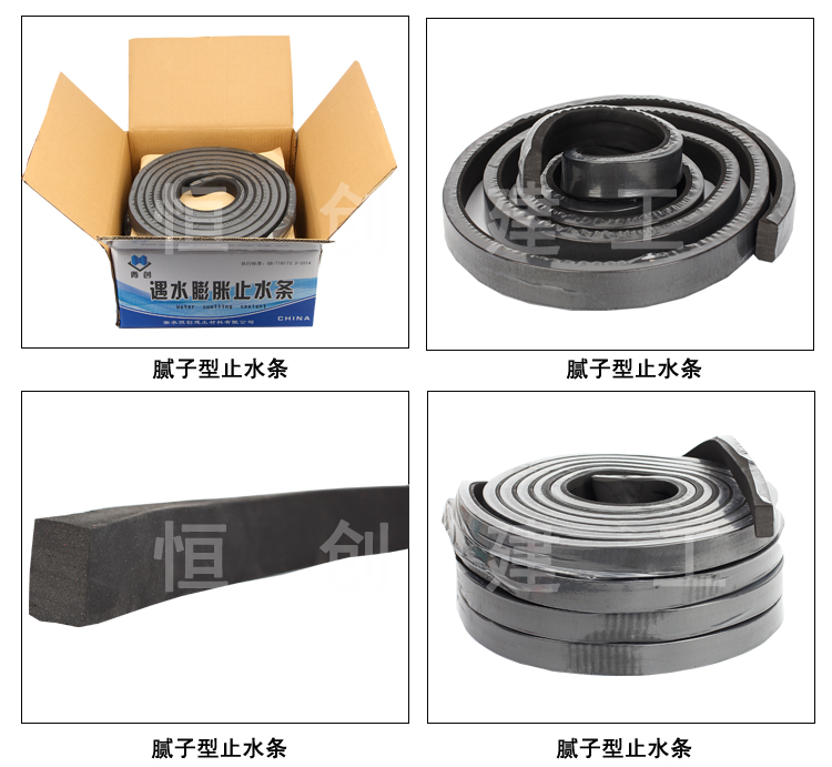 2.腻子型遇水膨胀止水条具有膨胀倍率高,移动补充性强,置于施工缝后具有较强的平衡自愈功能,可自行封堵因沉降而出现的新的微小裂隙,对于已完工的工程,如缝隙渗透漏水,可用该止水条重新堵漏。使用该止水条费用低且施工工艺简便,耐腐性能最佳。广泛应用于人防、游泳池、污水处理工程、地下铁路、隧道、涵洞等以及其它混凝土工程的施工缝、伸缩缝、裂缝。