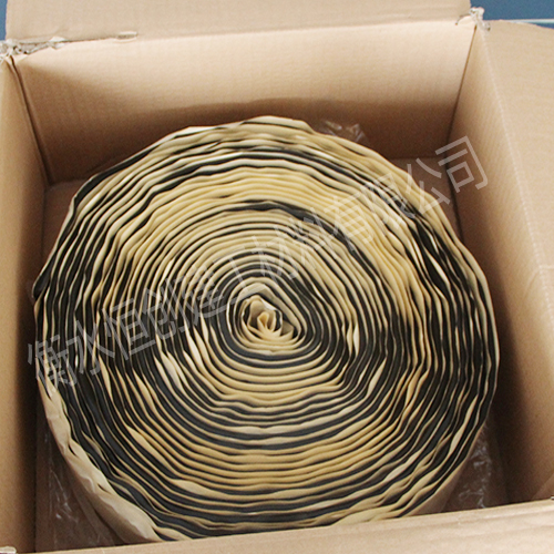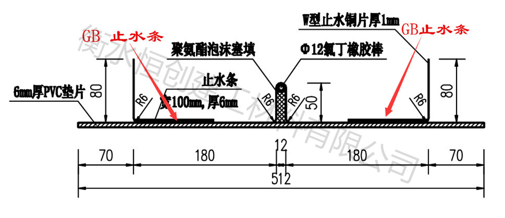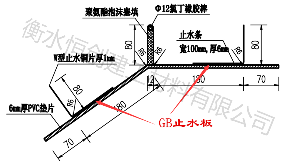 GB止水板我公司经多年潜心研究所开发出的一种柔性嵌缝胶所挤出的一种橡胶板,其主要成份为:它以特种橡胶为原料,具有独特性、高塑性、其耐热性、耐寒性、耐老化性能优异。还具有操作简便、无毒无味、耐水、粘附性能好等特点。柔性止水板是覆盖在接缝或裂缝表面发挥止水作用的板(片)形密封材料,通常与三元乙丙橡胶板、氯丁橡胶板等联合使用。伸缩缝上部采用粘贴柔性止水板的处理方案。施工时,渠道内搭建钢模围堰,以保证伸缩缝待处理部位2 m左右宽度内为干燥施工面。下部采用化学灌浆的方法。侧墙剥蚀部位用聚合物水泥砂浆修补平整。此处理方案的优点是具有双重保险、止水效果可靠、耐久性好。