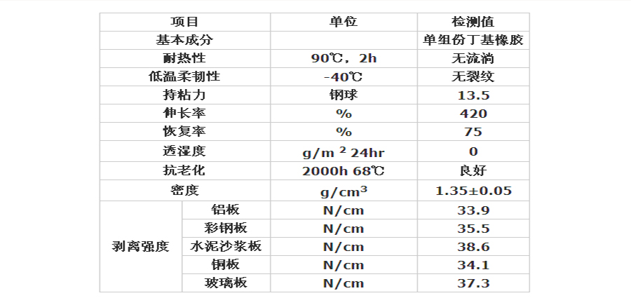 (1)可保持永久柔韧性、粘着性,能承受一定程度的位移,变形有良好的追随性。