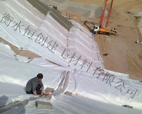 (2)合土工膜焊接质量的好坏是复合土工膜防渗性能成败的关键,所以务必做好土工膜的焊接,确保焊接质量,因此,土工膜焊接应有生产厂家派专业技术人员到现场操作,指导,培训,采用土工膜专用焊接设备进行。本工程土工膜焊接采用ZPR-210V型热合土工膜焊接机,土工布采用手提式缝包机缝接。 7.复合土工膜的锚固:复合土工膜上部锚固采用在堤顶处嵌固足够长度复合土工膜,砼封顶板形式。